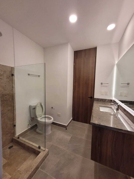 Recámara principal con closet vestidor y baño completo.