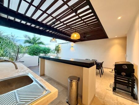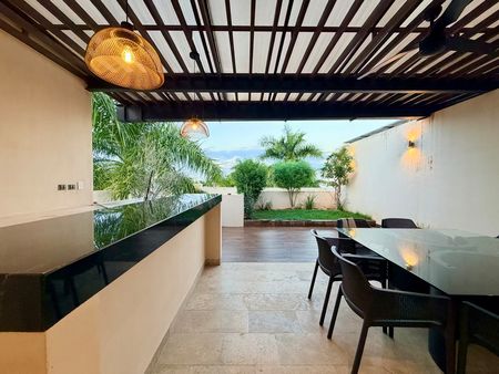 -Amplia área de terraza techada con meseta para bar