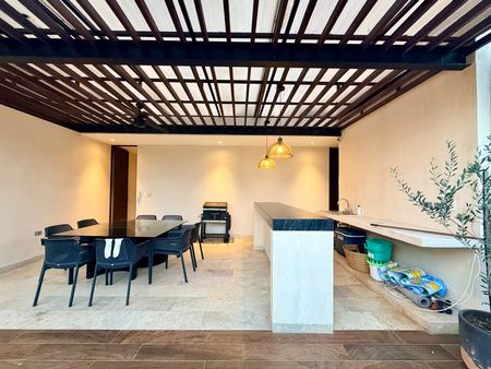 Este departamento se entrega totalmente amueblado y listo para vivir, con acabados modernos y detalles de diseño que maximizan cada área. Distribuido en dos niveles, incluye un roof privado, ideal para momentos de convivencia y descanso.