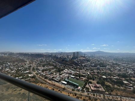Disfruta de las vistas al vivir en ésta espectacular torre, ubicada en el piso 14, estacionamiento techado para dos autos, elevador, cocina abierta, sala y comedor con vista a los arcos de Qro, la habitación principal con vestidor y baño completo espacio para cama king, la secundaria con baño completo al exterior. Área de lavado exterior con ventilación.