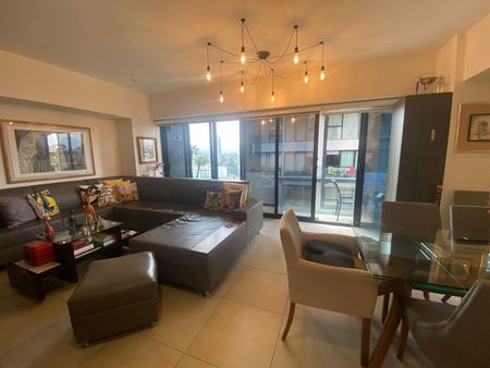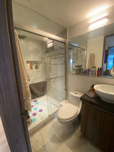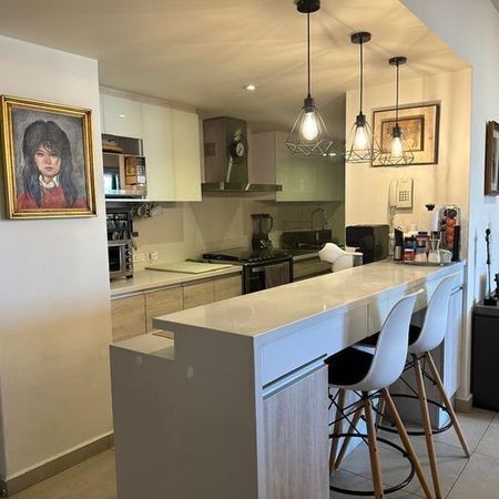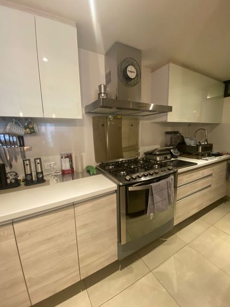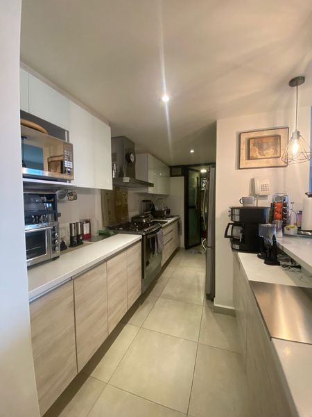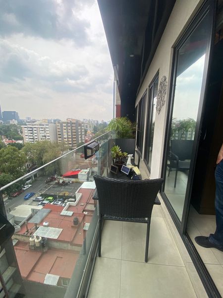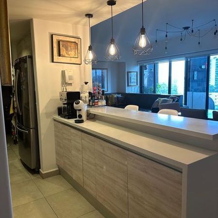 Ubicado en el octavo piso, cuenta con 114 m2 distribuidos en una amplia área social con sala y comedor, ventanales de piso a techo, cocina abierta recién remodelada con muebles hechos a la medida, área de lavado, cava y balcón a lo largo de todo el departamento.