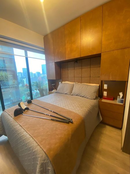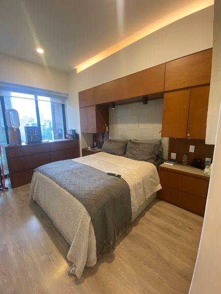 2 recámaras, cada una con wolking closet. 2 baños completos y dos lugares de estacionamiento con valet Parking.