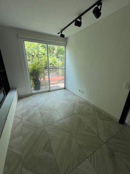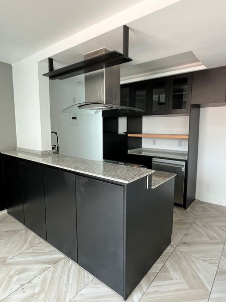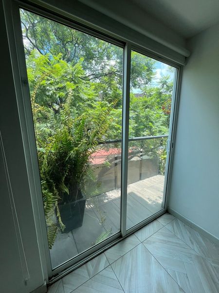 Departamento en dos niveles contando en planta baja con cocina abierta, baño completo, una recámara con clóset y balcón, segunda recámara con balcón (sin clóset), ideal como sala de TV. En la planta alta está la recámara principal con baño, dos lavabos, cancel de cristal y vestidor, salida directa a roof garden privado con asador, cuarto de lavado y cuarto para home office, dos lugares de estacionamiento, excelente iluminación natural.