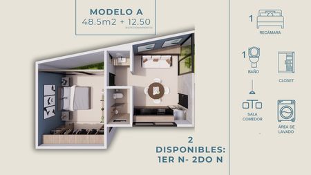 En Venta Departamento de 1 Habitación en Temozón Norte Mérida