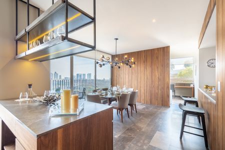 El departamento cuenta con una superficie construida de 231 metros cuadrados, distribuidos de manera funcional en tres recámaras, cuatro baños completos y un medio baño, además de dos espacios de estacionamiento. Diseñado para completar las necesidades modernas, su construcción está prevista para finalizar en 2025, garantizando un inmueble completamente nuevo y listo para habitar.