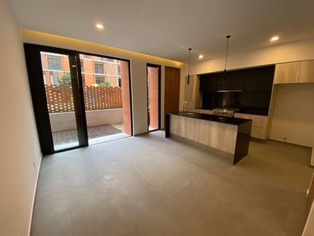 Superficie total 116 m2 en planta baja con superficie interior de 62.37 m2 y terraza descubierta privada de 53.76 m2 en pasillo exterior.