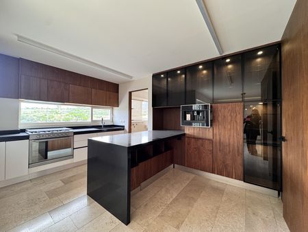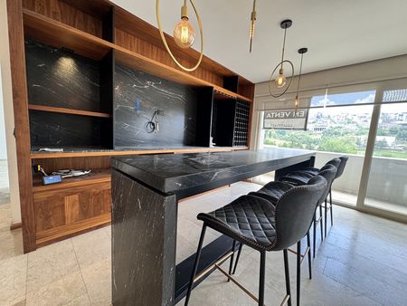 Descripción: Recibidor, sala con barra de mar en cubierta de granito, y cava, comedor y cocina integral con cubierta en granito y barra desayunador, amplia alacena y estación de café, cuarto de lavado amplio, cuarto de servicio con baño completo, cuenta con 3 recamaras todas con baño completo, 2 de ellas con vestidor y una con closet, una de las recamaras se acondiciono para hall y tiene una puerta oculta corrediza para accesar al baño completo, y 2 terrazas, una que conecta desde la sala y las 2 habitaciones y otra pequeña terraza a un lado de la cocina cuenta con cochera para 3 autos y una bodega. Pisos en Marmol travertino.