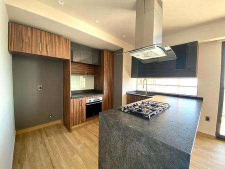 Cuenta con acabados de lujo en baños, cocina integral con cubierta de granito y muebles de cristal en muebles de cocina, cristal templado en canceles de baño, mármol en baños, muro de piedra natural en espacio de sala comedor. Incluye cortinas de lujo y blackout en recamaras.