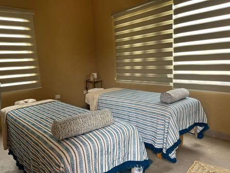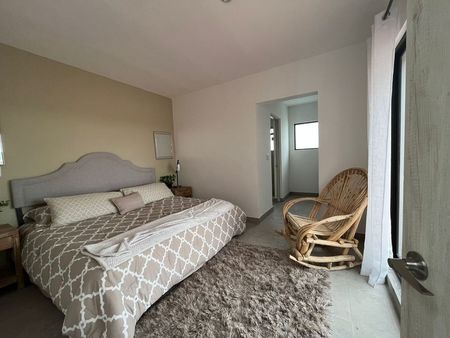 Terraza techada con pérgola de madera, parrilla, tarja y medio baño. Roof Garden con entrada independiente. Pisos en cantera y barro natural, mármol en cubiertas de baños.