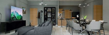 Cuenta con 2 recámaras con clóset, 1 baño completo con cancel de cristal templado, balcón, sala comedor con terraza, medio baño de visitas, cocina integral con barra desayunadora, cuarto de servicio y estacionamiento techado para 2 autos.