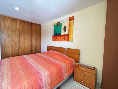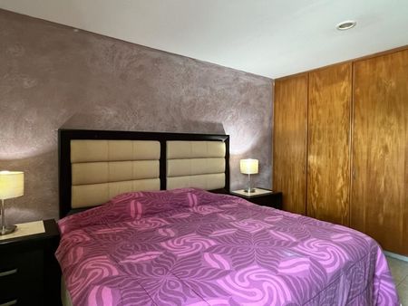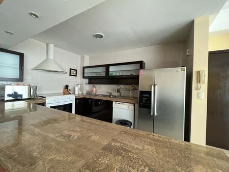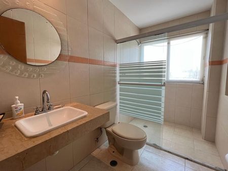 Cuenta con 2 recámaras, 3 baños completos, sala comedor, cocina integral equipada con estufa, alacena, clóset de blancos, family room, balcón y garage para un auto con portón eléctrico.