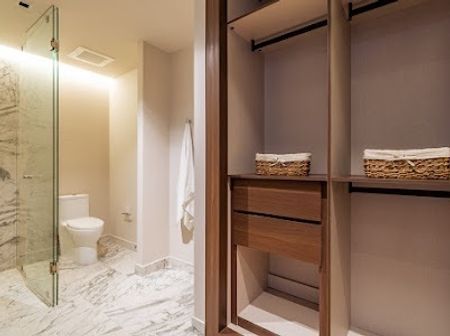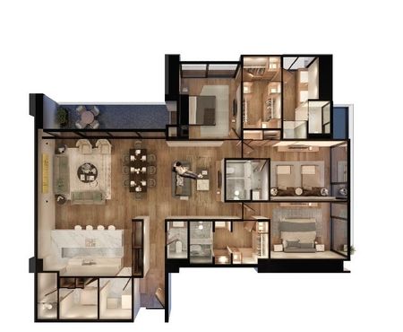 Este departamento cuenta con 3 recámaras (la principal tiene vestidor), 3 baños y medio , estancia-comedor, cocina, área de lavado, sala de TV y 3 cajones de estacionamiento.