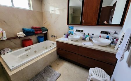 El dormitorio principal es un oasis de confort, con baño completo, tina y un walk-in closet muy generoso. Las recámaras secundarias están diseñadas para el bienestar, una con walk-in closet y baño privado, mientras que las otras dos comparten un baño y cuentan con amplios closets.