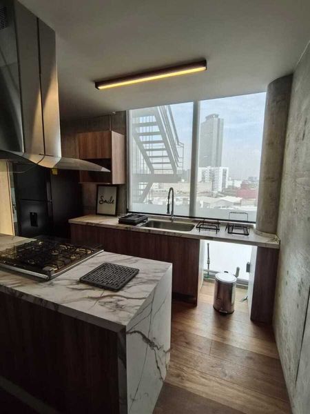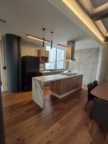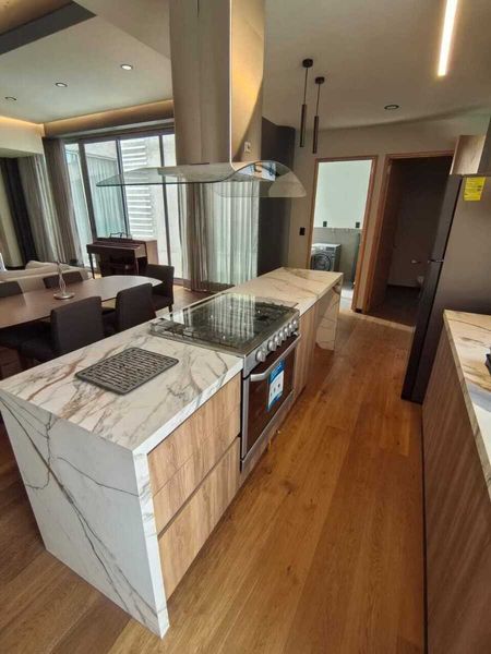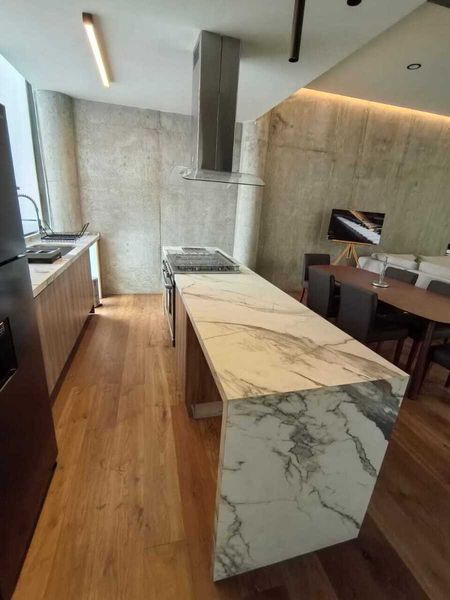 Departamento en Venta. De 115m2 , cuenta con 2 recamaras, 2 baños, sala comedor, cocina abierta, área de lavado, 2 lugares de estacionamiento.