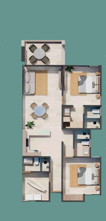 Consta de 8 torres de 3 niveles, siendo un total de 72 departamentos con una construcción desde 102.35 hasta 159.07 metros cuadrados con un precio desde $6,187,181.43 hasta $8,961,610.95.