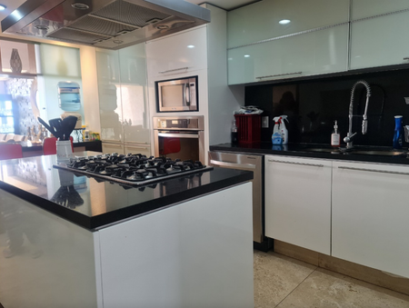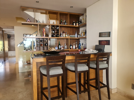 El PH está construído en 228 m2 distribuidos de la siguiente manera: vestíbulo de entrada, baño de visitas, family room, amplia estancia y comedor con vista despejada y espectacular, tiene un lindo bar al lado de la estancia, cocina integral, cuarto de lavado y servicio con baño completo. En la planta alta tiene 3 recámaras con techos de doble y triple altura. Las recámaras secundarias cuentan con balcón y comparten baño con doble lavabo. Cada una tiene su closet y sobre el pasillo de distribución se encuentra un amplio closet de blancos. La recámara principal tiene vista despejada y arbolada, cuenta con walking closet y baño completo. Tiene también bodega y dos espacios de estacionamiento.