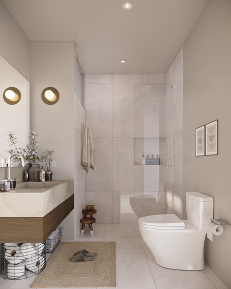 - Piso de cerámica de formato grande.