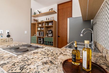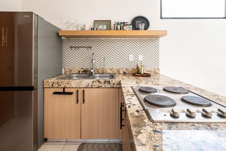La cocina está completamente equipada con gavetería inferior y superior, proporcionándote amplio espacio de almacenamiento para tus utensilios y provisiones. Además, dentro del "coffe spot", una airfryer para preparar comidas más saludables y un microondas para calentar tus platillos favoritos con facilidad.