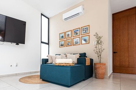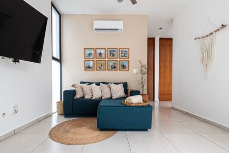 Disfruta de la tranquilidad y la belleza de Yucatán desde tu propia terraza privada, equipada con un asador para disfrutar de deliciosas parrilladas con amigos. En el interior, encontrarás un espacio moderno y acogedor, con una sala equipada con un mueble confortable y televisión, ideal para relajarte y disfrutar de momentos de calidad.