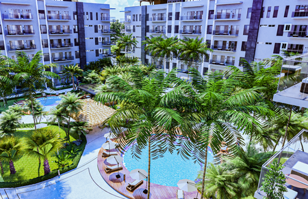 Condominio residencial de 4 torres de 6 niveles construidas con arquitectura contemporánea. Minimalismo, viviendas sostenibles, elegancia y sencillez en perfecta fusión con el entorno natural de este destino turístico de alto nivel.