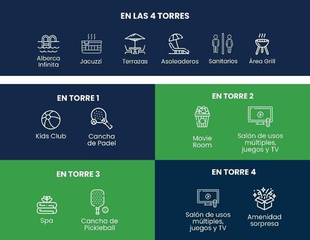 Fecha estimada de entrega: Torre 1 - Enero 2025. Torre 2 - Agosto 2025. Torre 3 - Marzo 2026, Torre 4 - Diciembre 2026.