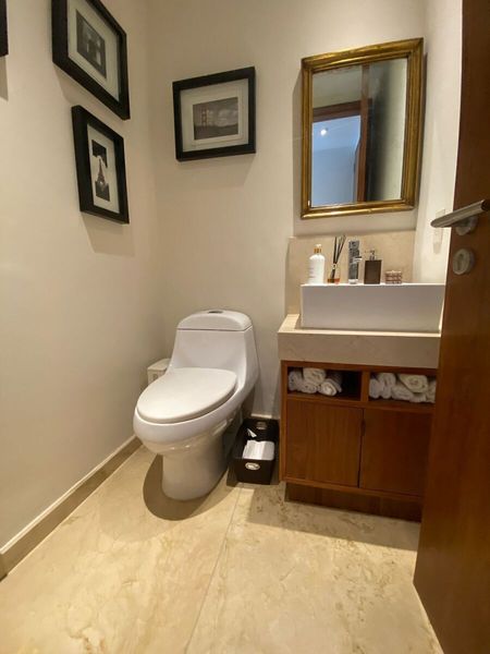 Planta alta: 2 recámaras cada una con vestidos y baño completo, la principal con sala de TV