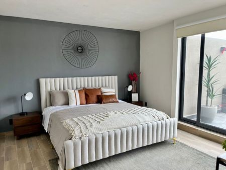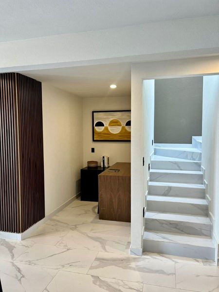 Segundo nivel: recámara pricipal con baño completo y vestidor, acceso independiente al roff con pérgola y terraza con vista panorámica.