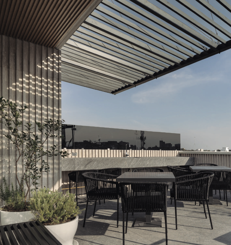 El edificio cuenta con un atractivo roof garden común, perfecto para reuniones, tomar el sol o simplemente relajarse con una vista urbana de la ciudad.