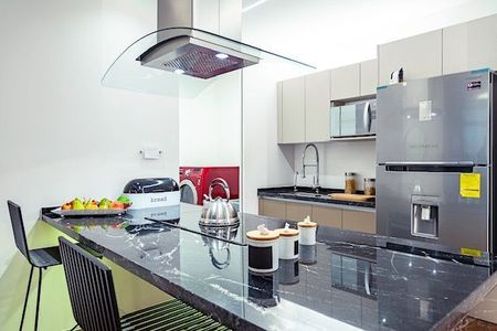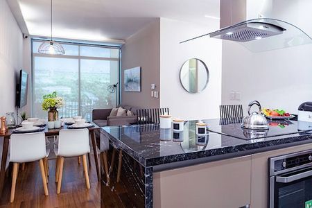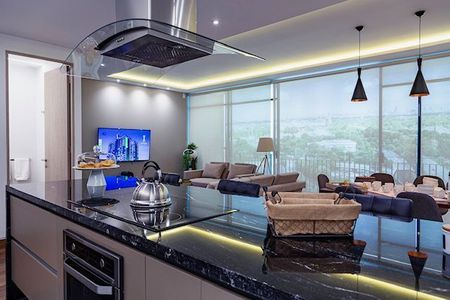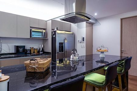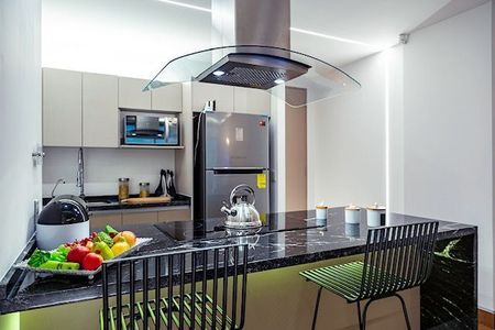 Ven a vivir un moderno departamento con cocina abierta, completamente equipada y barra desayunador.