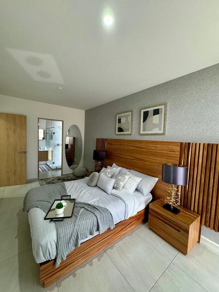 Recámara principal con baño privado y vestidor.
