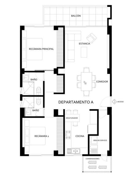 Departamento de 2 recámaras principal con acceso directo al balcón, 2 baños completos, sala comedor con magnífica vista al mar desde el balcón, cocina integral con barra desayunadora, cuarto de servicio y estacionamiento para 1 auto