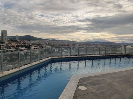 El desarrollo consta de dos torres con vigilancia las 24 horas, Alberca, salón de usos múltiples, cancha de paddle tenis, gimnasio equipado, vestidores con regaderas y vapor, áreas verdes, jardines y vistas panorámicas increíbles desde el balcón del piso 9 en que se encuentra el departamento. Dos elevadores, accesos y rampas para adultos.