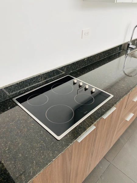 -Cocina equipada con parrilla eléctrica y totalmente vestida con carpintería