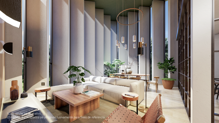 AMENIDADES: lobby hub, coworking privado, fitness room, community lounge, rooftop bar, alberca, caseta de vigilancia, terraza grill.