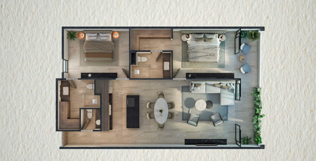 AMENIDADES: padel, pet park, kids park, sports bar, business center, family kitchen, lavandería, kids club, área de colaboradores, alberca, terraza, área snack, tiki, cancha de petanca, área Grill, sala lounge, speakeasy bar, gimnasio, área para calistenia, área para yoga.