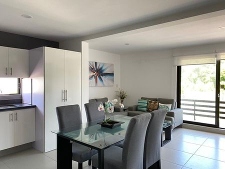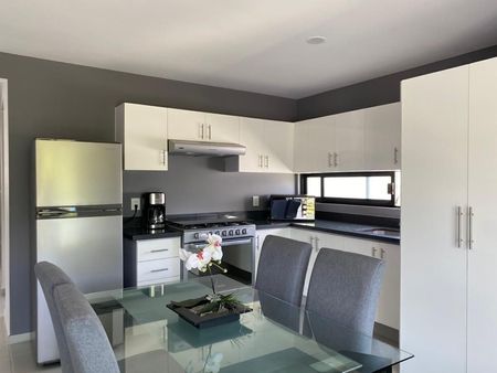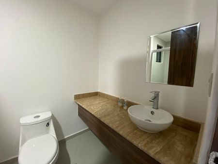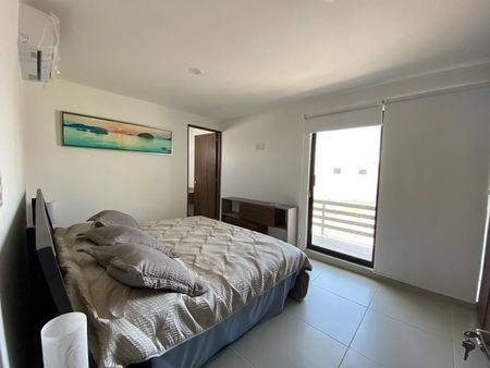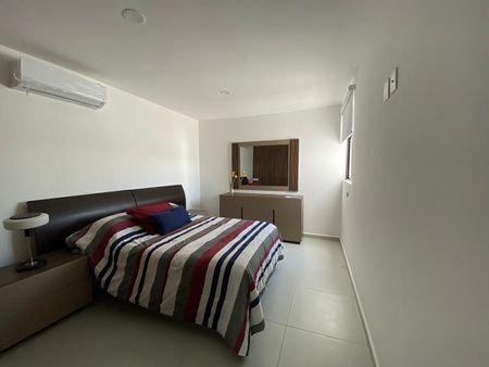 Cuenta con 2 recámaras, 2 baños completos, sala comedor, cocina integral, 3 aires acondicionados, centro de lavado y estacionamiento.