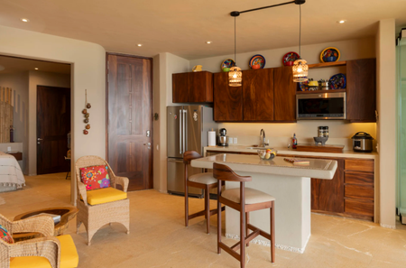 Descubra Zaha 2 en Punta Majahua, una galardonada propiedad vacacional frente al mar en Troncones. Esta villa llave en mano de 1 dormitorio y 1 baño cuenta con características exquisitas que incluyen una impresionante piscina privada equipada con jacuzzi y calentador. Disfrute de las fascinantes vistas del atardecer desde la amplia terraza, ideal para ver la puesta de sol, cenar o descansar. Además, disfrute de la vigorizante ducha al aire libre adicional, un final perfecto para el ambiente lujoso. Sumérjase en el diseño moderno de este refugio en la planta baja, cuidadosamente amueblado para su comodidad y estilo. Con acceso directo a la playa, Zaha 2 redefine la vida costera, ofreciendo una combinación perfecta de lujo y tranquilidad.