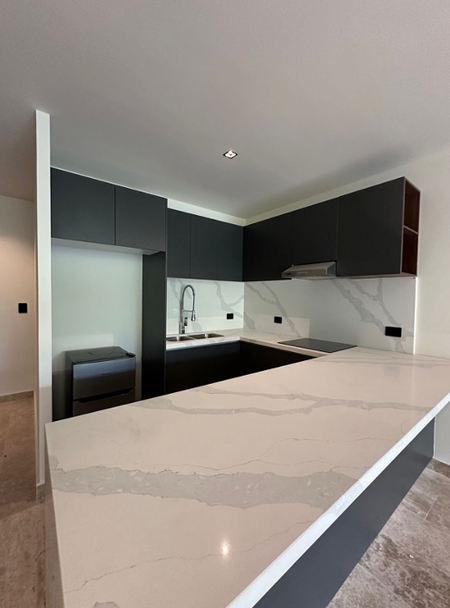 granito blanco - Parrilla eléctrica - Campana extractora - Minisplits inverter - Iluminación led - Espejos