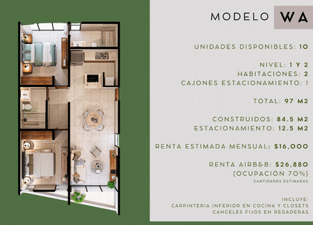 Proyecto de 1 de 2 habitaciones, ubicados en temozon norte, donde puedes encontrar el equilibrio, entre funcionalidad y confort, elevando la calidad de vida de quien lo habita.