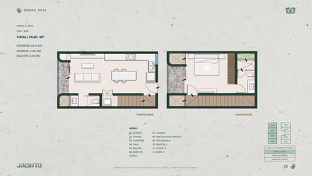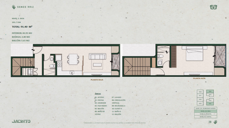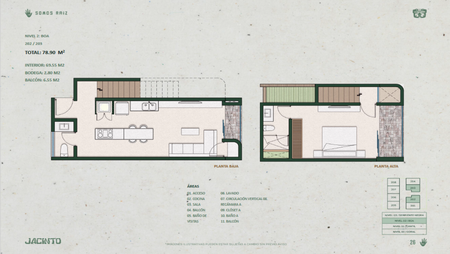 Estos 2 últimos niveles cuentan con 8 deptos en 2 niveles en cada uno (201-208) que se distribuyen en las siguientes áreas: