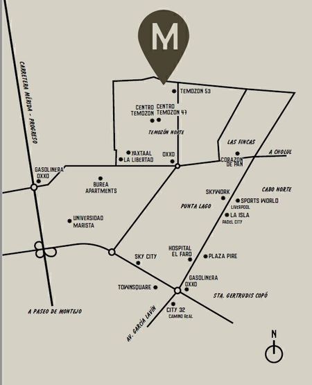 Con una ubicación privilegiada, al norte de la ciudad, estarás a menos de 15 minutos de la Universidad Marista, Modelo y Anáhuac Mayab, llegar a plazas como La Isla, The Harbor y Altabrisa así como el Hospital El Faro o StarMédica te tomará unos 20 minutos, además, se encuentra a unas cuadras del Periférico de Mérida con fácil acceso a desarrollos tanto comerciales como residenciales y a la Carretera a Progreso desde donde en menos de 25 minutos podrás estar disfrutando de las hermosas costas yucatecas, definitivamente la mejor elección para tu nuevo hogar.