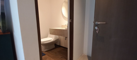 Edificio con cuarto de máquinas, baño de servicio en lobby y planta de luz.