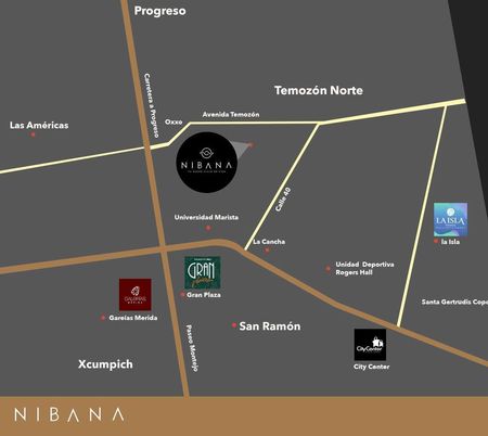 El proyecto cuenta con una ubicación inmejorable a solo 2 cuadras de la avenida principal de Temozón Norte y a 5 minutos de plazas como La Isla y The Harbor, cercano se encuentran las mejores escuelas, universidades, centros comerciales, hospitales, supermercados y avenidas importantes, haciendo de Nibana un proyecto con una gran plusvalía