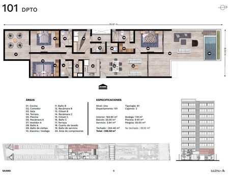 Saáma se encuentra conformado por 16 departamentos y 2 penthouse con vista privilegiada al mar y más de 15 amenidades estilo resort, ubicado en las hermosas y tranquilas playas de Telchac Puerto, frente a la playa con vista al mar, a tan solo 5 minutos de la Laguna Rosada y 20 minutos del Puerto de Progreso.