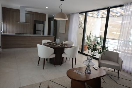 Sala y comedor bien iluminadas por ventanales con acceso a terraza.
