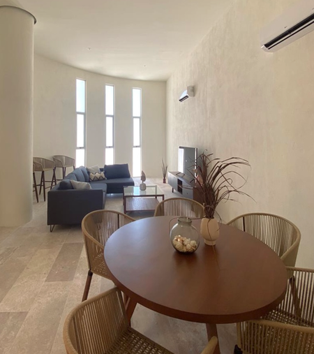 Temporada es un proyecto único. Sus 32 departamentos de autor distribuidos en sus dos edificios, ofrecen vistas a los mejores escenarios que la costa yucateca puede ofrecer. Situado a tan solo 40 minutos de la ciudad de Mérida, entre el verde azulado del Golfo de México y el rosa de las lagunas, Temporada se convierte en un santuario cíclico para aquellos que buscan un escape de la ciudad y volver a la costa.