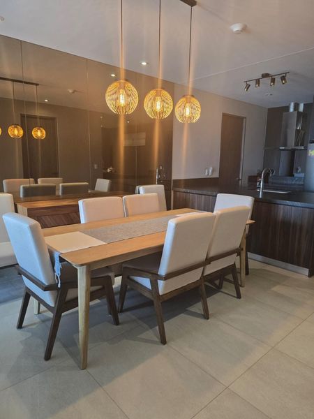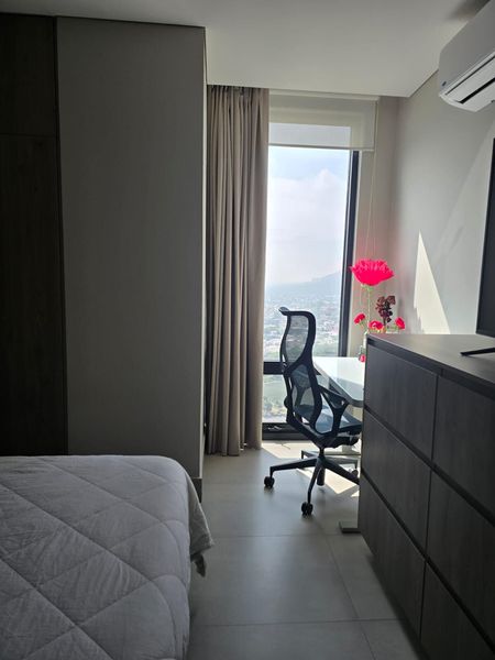 Hermoso departamento, como nuevo. Equipado con acabados de lujo. Tres recámaras, Dos baños completos, baño de visitas, Un flex (puede ser estancia tv o estudio), Sala, comedor, cocina con cubierta de cuarzo mate, balcón, lavanderia. Dos estacionamientos muy bien ubicados al lado del elevador, dos bodegas. La torre cuenta con excelentes amenidades: alberca, salon de juegos, areas abiertas, asadores, juegos infantiles, gym, ludoteca. Equipado con electrodomésticos.