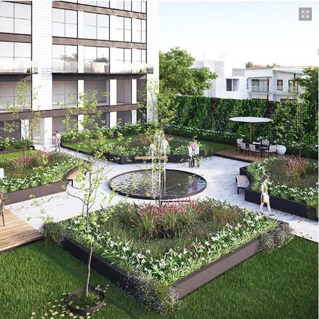 Jardines verticales en todo el contorno del jardín central.
