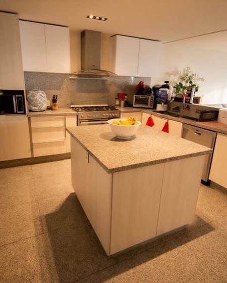 Cocina equipada con isla y despensa