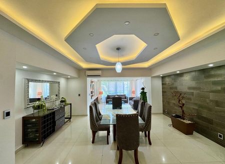 Cuenta con 3 recámaras, 3 baños completos, cocina equipada, sala, comedor, cuarto de servicio y un pequeño balcón,